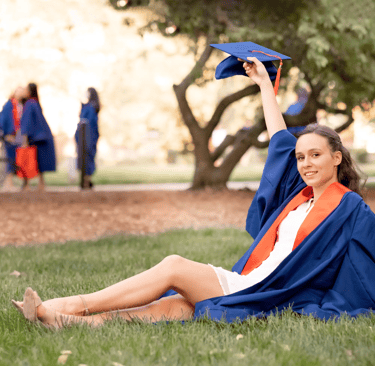 Finally, we'll drape your gown over your shoulder for an extra touch of celebratory style. This conveys the excitement of your achievement and makes for stunning, timeless photos.