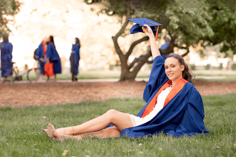 Prop Power: Hold items that symbolize your journey – a diploma, textbooks, sports equipment, musical instrument, etc.