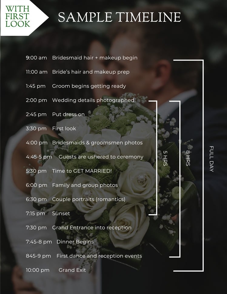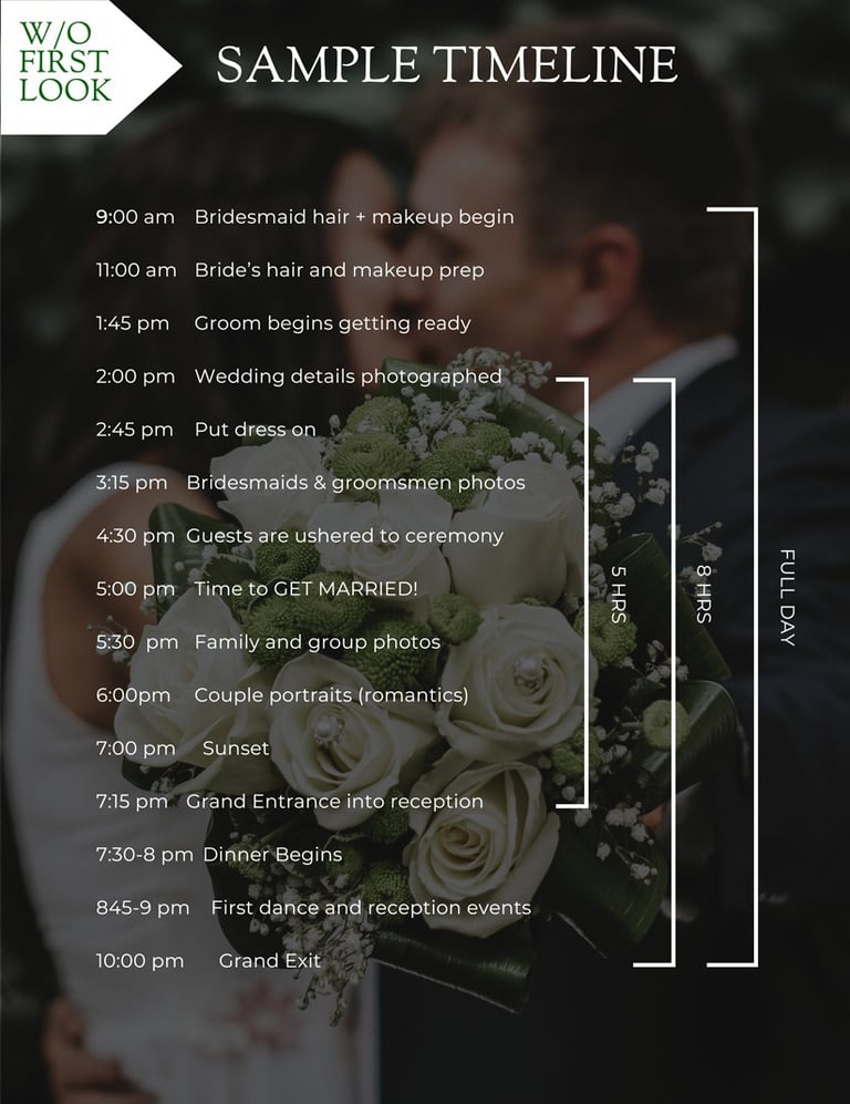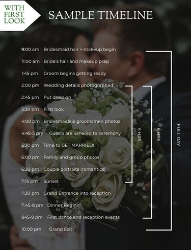 A couple of months before your big day, we'll chart a course through the exciting timeline of your event. This isn't just a schedule, it's a blueprint for capturing the wild dance of emotions and joyous adventure that's your wedding. Think less "rigid itinerary" and more "treasure map to hidden memories."
